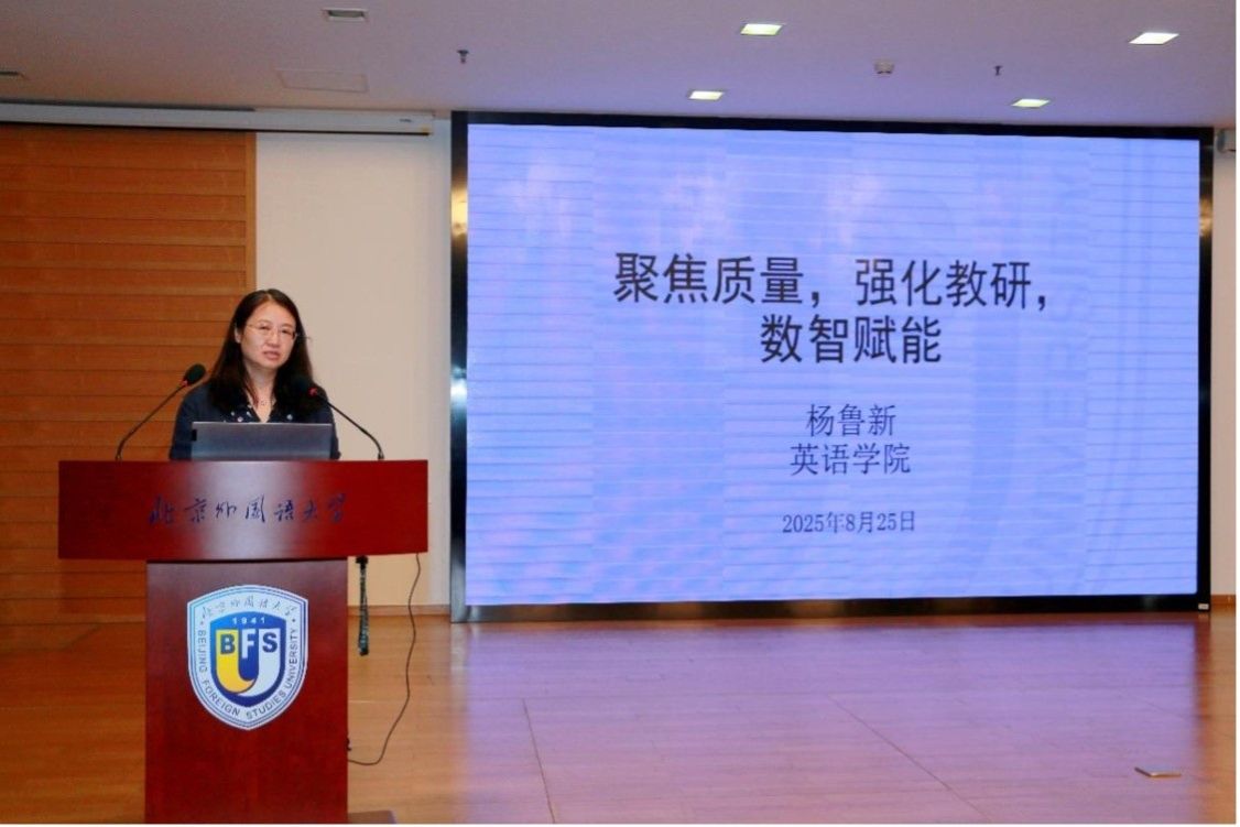 2025年8月25日,英语学院新学期开学大会暨立德树人、数智赋能高质量创新发展研讨会在北京外国语大学行政楼配楼成功举办。学院领导、各教研室与研究中心负责人及全体教师参加会议,共同探讨新时代下外语教育的改革,共同谋划“十五五”期间英语学院的发展蓝图。
