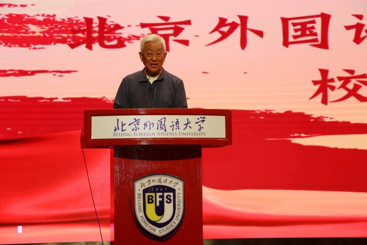 北京外国语大学原党委书记、现校友会会长杨学义作为特邀嘉宾讲话。他以幽默风趣的语言,强调北外英院人的强项就是凭借强大的英语基本功,在正式场合恰当合理地讲好中国故事。他讲述了英语学院老前辈的故事,鼓励同学们把握好学业、坚守好底线、照顾好身体,如此才能为国家和社会做出贡献。