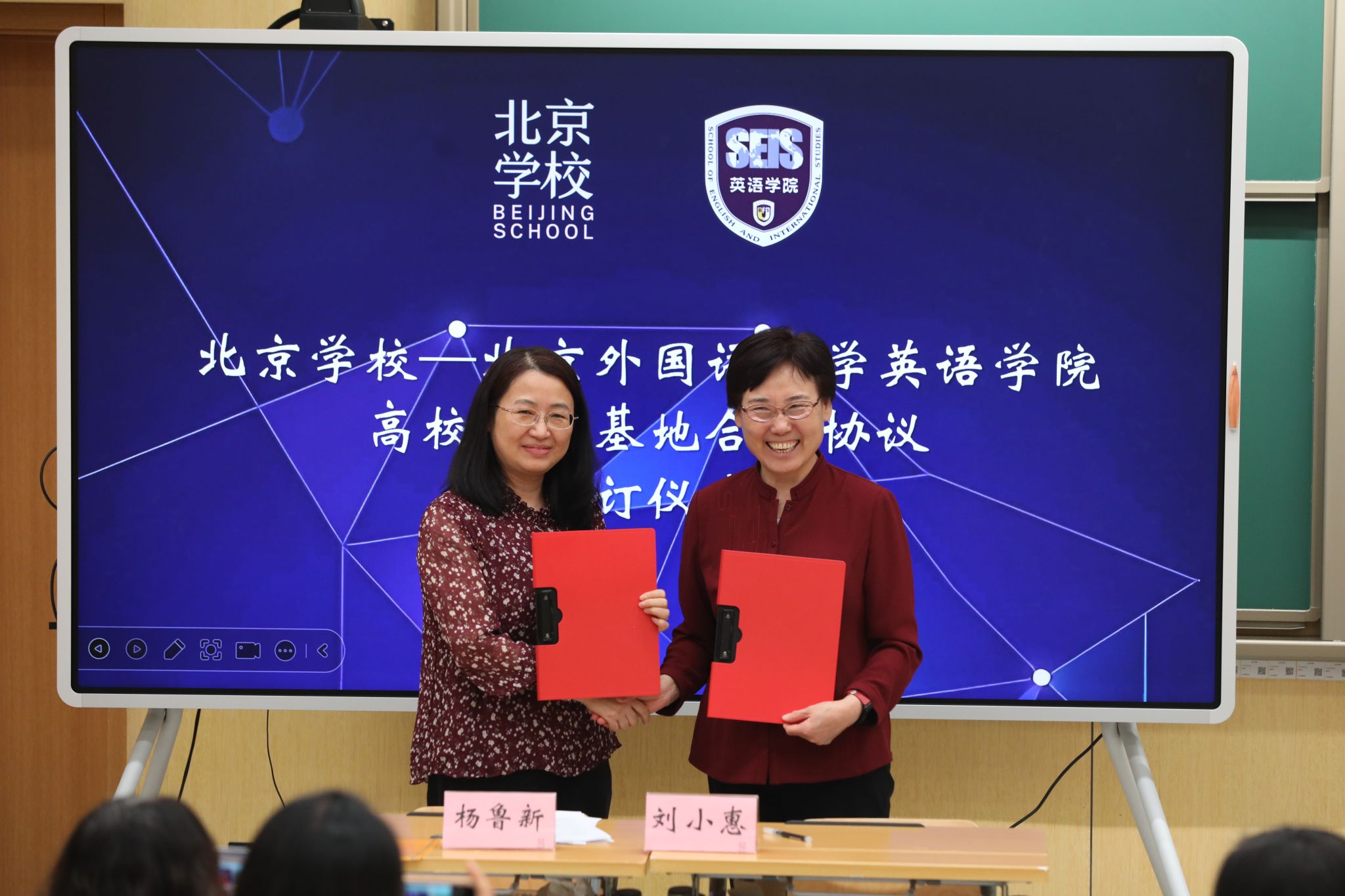 为提升教学水平,拓展大学生就业成长路径,促进高质量充分就业。5月28日,英语学院杨鲁新院长受北京学校邀请,参加北京教育学院协同创新学校项目教学课例展示活动,并共同签署实习基地合作协议。北京学校、中国人民大学附属中学校长刘小惠,北京学校副校长程岚和北外师生参加本次活动。