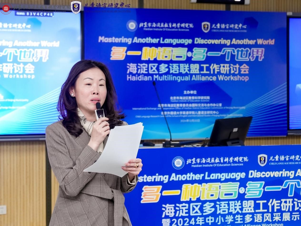 为进一步探索海淀区多语种教育的高质量发展,2024年12月20日,由英语学院儿童语言研究中心和海淀区教委国际办、海淀区教科院联合主办的“海淀区多语联盟工作研讨会暨2024年中小学生多语风采展示活动”在北京外国语大学成功举办。