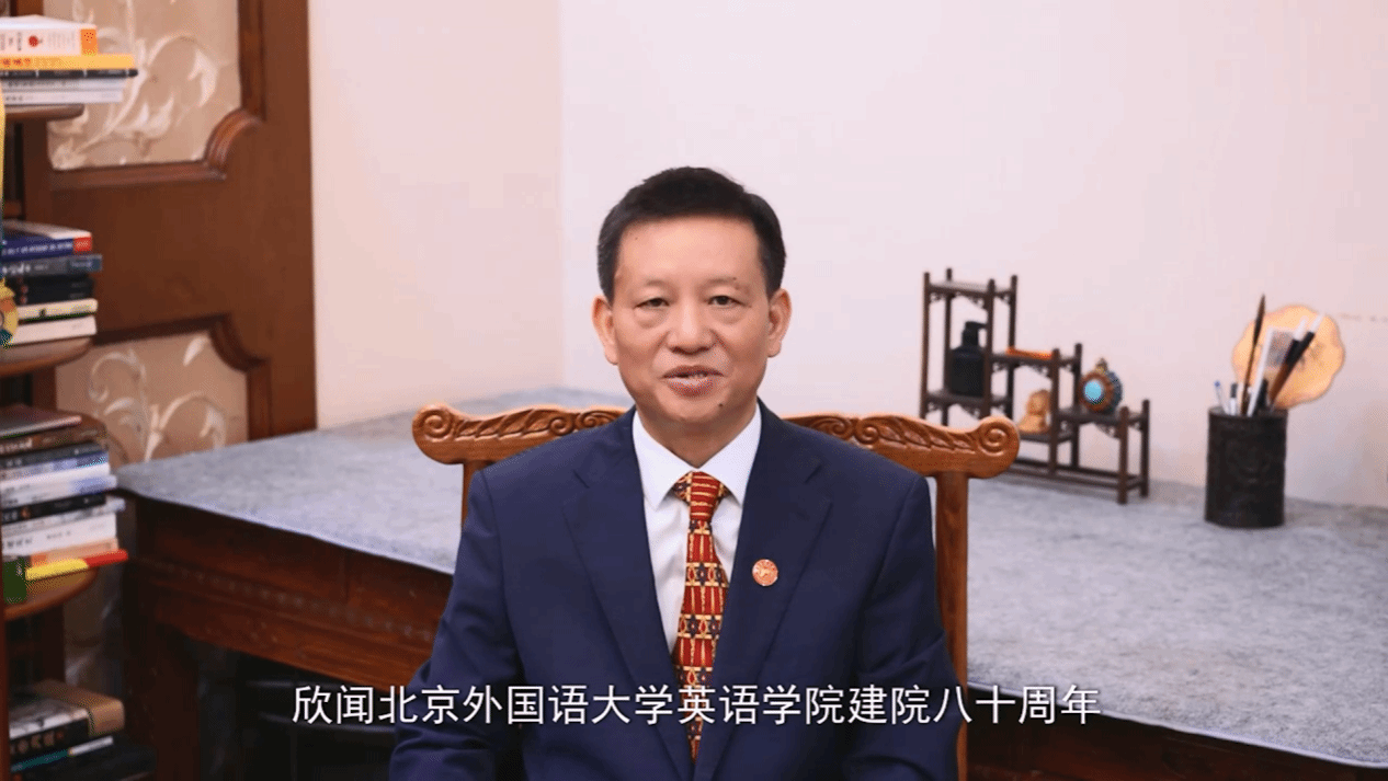 全国英语专业教指委、湖南师范大学党委书记蒋洪新教授,国务院外语学科评议组召集人、上海外国语大学副校长查明建教授,兄弟院校代表、四川外国语大学校长董洪川教授,以视频方式向北外英语学院建院80周年致以热烈的祝贺和崇高的敬意,希望英语学院赓续传统,再创辉煌。