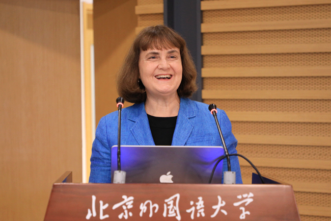 埃文斯感谢北外邀请其参加纪念会,感谢北外为马克林教授提供的温暖“大家庭”。她希望两校共同传承马克林教授的精神,赓续两校友谊,促进中澳学者交流及学术合作,携手创造更为广阔的未来。她表示,为祝贺马克林教授在华教学60周年,纪念两校长期友好合作的特殊意义,格里菲斯大学准备了一份特别贺礼--以北京外国语大学的名义认养一只澳大利亚国宝考拉熊,希望通过双方精心呵护,共同推动双方合作关系健康长久发展。