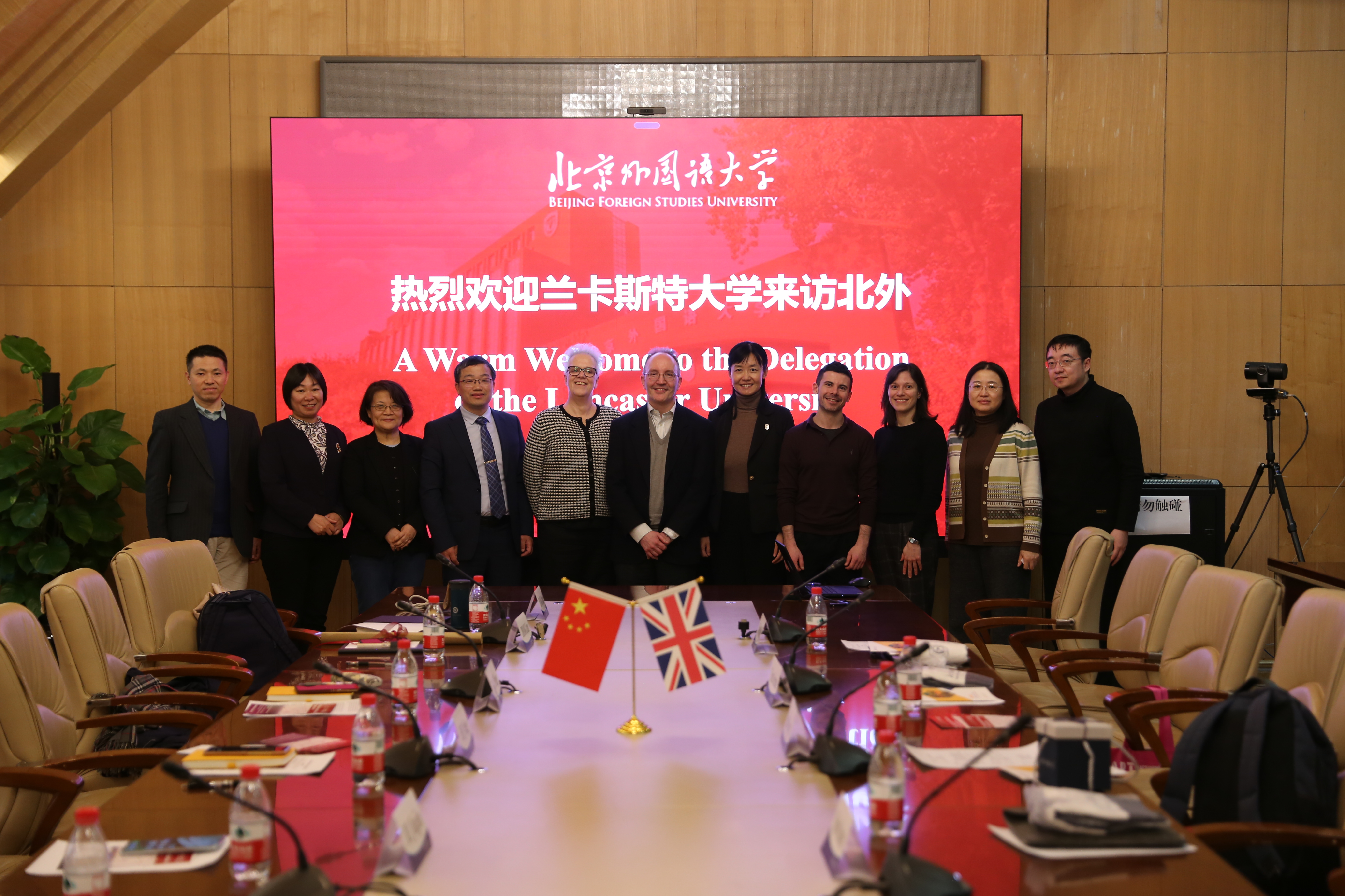兰卡斯特大学语言学和英语系中国协调员维托里奥·坦图奇(Vittorio Tantucci)和拉法埃拉·博蒂尼(Raffaella Bottini)陪同来访,北外英语学院副院长张莲教授、副院长杨鲁新教授和语言学中心主任夏登山教授以及北外中国语言文学学院邓川林教授参加了会谈。