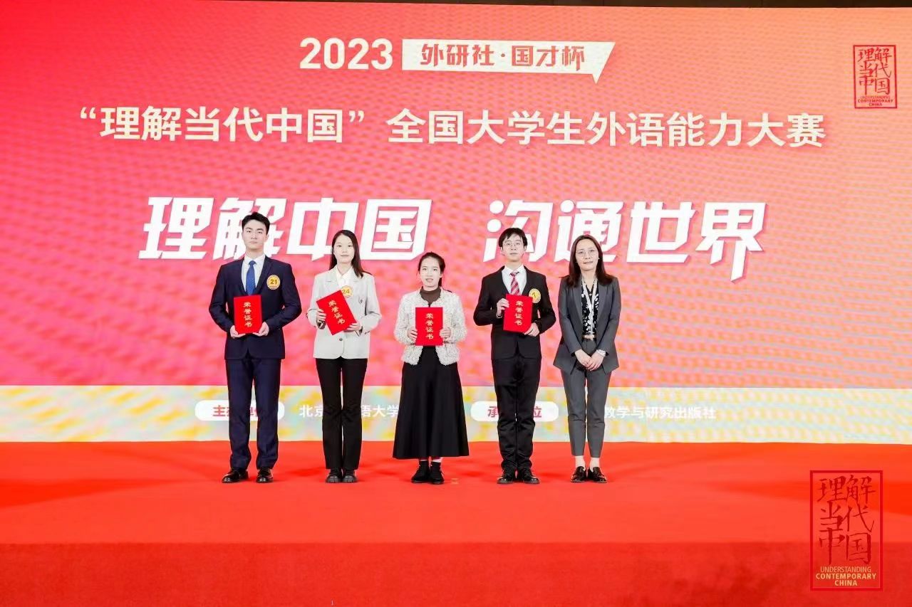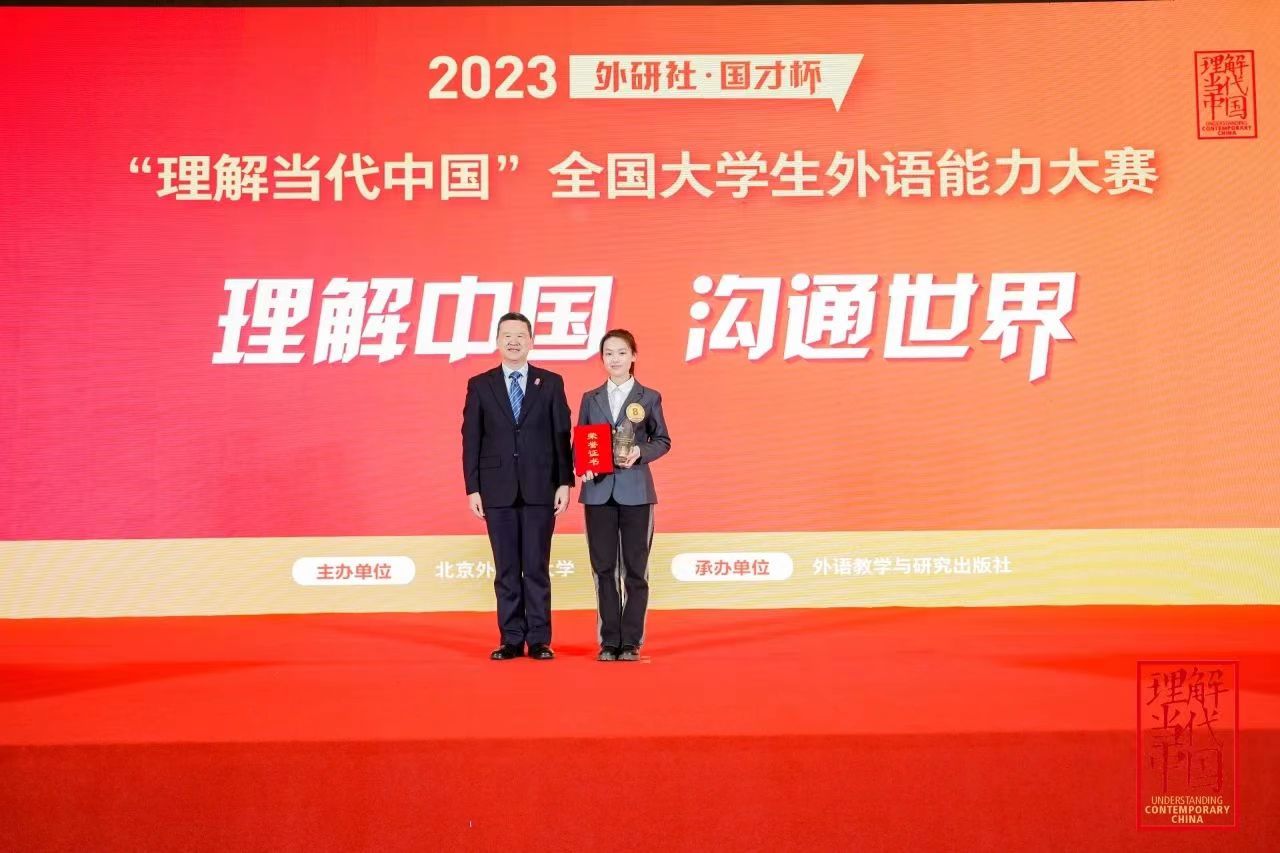 12月8日,2023“外研社·国才杯”“理解当代中国”全国大学生外语能力大赛(英语组)国际传播综合能力赛全国决赛圆满落幕,我校英语学院2022级徐成成同学斩获冠军。