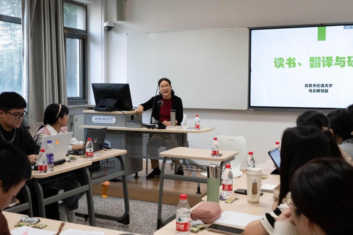 为增进师生间沟通交流,为同学们提供专业有效的学业指导,2023年10月11日下午,英语学院举办“教授面对面”活动,邀请马会娟教授以“读书、翻译与研究”为主题,与同学们进行深入交流。本科辅导员杨玲和25名同学参加活动。