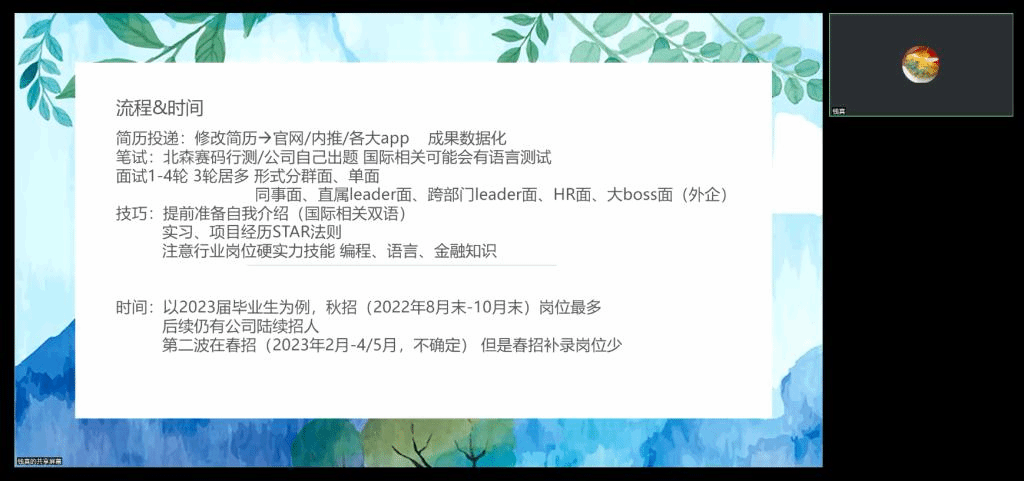 4月7日晚,英语学院学业与职业支持中心举办“就业经验分享沙龙”系列活动之实习就业专场。本次分享会邀请已获得快手、阿里、顺丰、京东、比亚迪等大厂录用通知的钱真同学,就职于字节跳动的黄皙雲同学,为大家讲解求职的面试流程、注意事项、简历撰写等问题,为有相关求职意向的学生提供借鉴经验,帮助其调整优化自身发展计划。