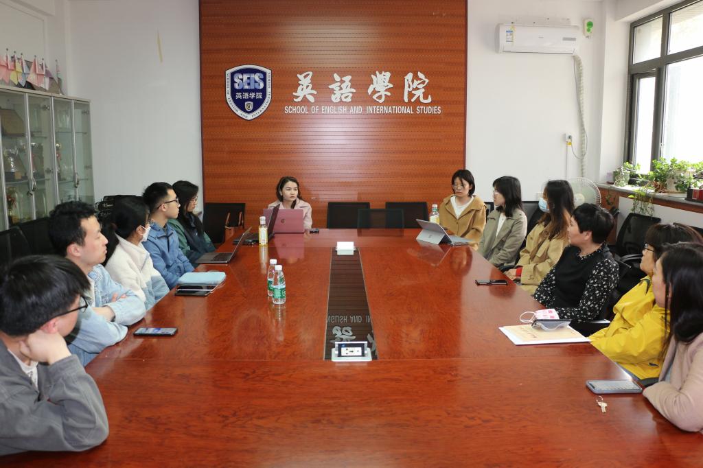 4月3日下午,新疆师范大学外国语学院院长伊力米热•伊力亚斯受邀前来英语学院开展2023届毕业生招聘宣讲工作。党总支书记王明欣,副院长张莲进行了接待。