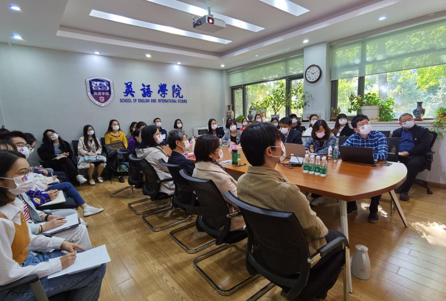 英语学院党总支将进一步组织师生认真学习党的二十大报告,深入领会报告的精神内涵,切实把思想和行动统一到党的二十大精神上来,培根铸魂,立德树人,为服务国家战略、推动世界更好了解中国做出新的贡献。