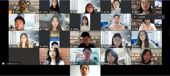 在英语学院会议室,领导班子成员和师生代表共同观看直播。按照学校安排,党总支书记和院长在晨读厅主会场观看直播,60名学生代表在千人礼堂观看直播。全体教师和本科生、研究生、预科生在线观看直播。