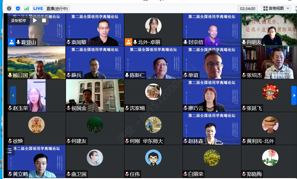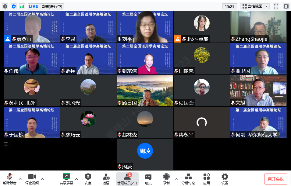 2022年9月11日至12日,北京外国语大学英语学院、中国外语与教育研究中心和许国璋语言高等研究院联合召开了“第二届全国语用学高端论坛”。本次论坛由北京外国语大学黄教授召集,英语学院夏登山教授组织,共邀请了28名全国语用学界知名学者在线上进行深度交流,主题包括会话蕴涵、言语行为、(不)礼貌研究、实验语用学、语用—语义界面研究等语用学经典论题及当前的热点话题,力图反映当前中国语用学研究的最高水平。