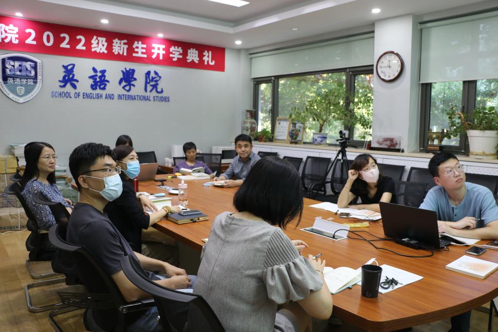 8月31日,英语学院党总支召开理论中心组学习扩大会暨《习近平谈治国理政》第四卷双语学习主题党课。学院理论中心组全体成员和班子成员在111会议室参加学习,学院翻译方向本科生、翻译专业研究生100余名在线上参加学习。英语学院党总支书记王明欣主持会议,副院长彭萍做主旨报告。