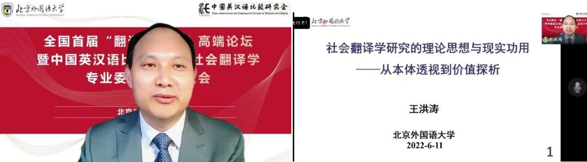 社会翻译学专委会会长、北京外国语大学王洪涛教授聚焦社会翻译学研究的理论思想与现实功用。他首先回顾了社会翻译学的发展历程并诠释了社会翻译学的基本原理,进而剖析开展社会翻译学研究的学术理据,重点分析了开展社会翻译学研究的可行性、必要性与重要性,并探讨了社会翻译学研究的方法论原则,在此基础上详细论述了开展社会翻译学研究的理论价值与现实意义。
