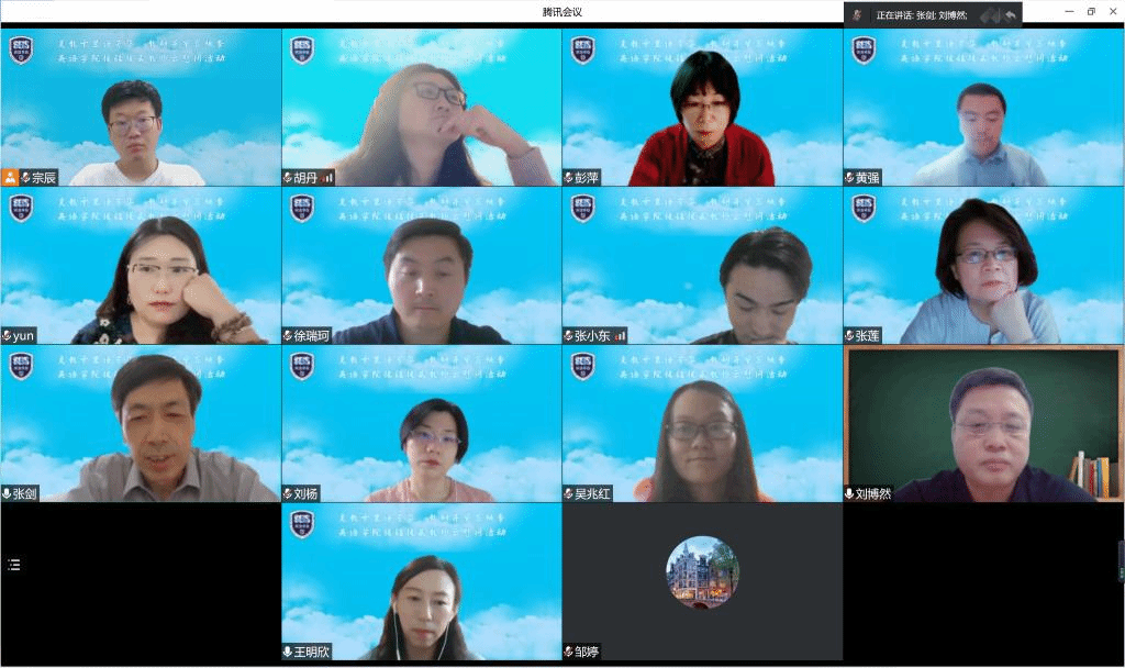 2022年5月31日,英语学院在线上举办疆援藏教师慰问活动。北京外国语大学人事处处长刘博然、英语学院院长张剑和学院援疆援藏教师、青年教师代表参加。英语学院党总支书记王明欣主持慰问活动。