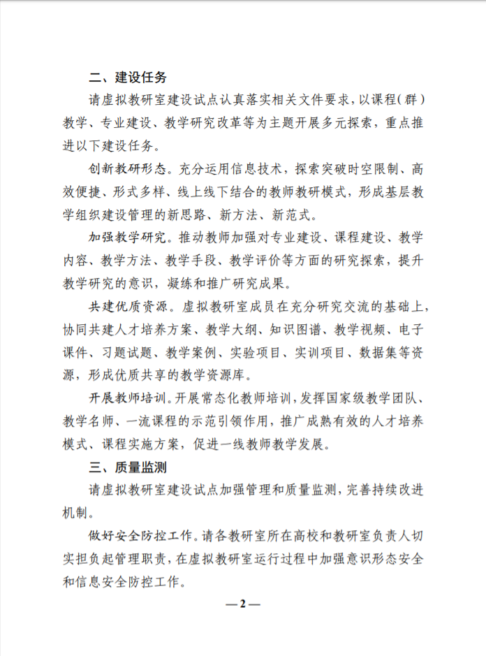 虚拟教研室是我国信息化时代背景下加强新型基层教学组织建设的重要探索,在人工智能技术的支持下,能够进一步突破时空限制,融合教育教学资源,强化教师教学发展共同体建设,提升教师教育教学能力。首批虚拟教研室建设试点名单共计439个,英语学院作为北外获此殊荣的五个教研室之一,将继承北外语言训练优良传统,以思辨能力培养为导向,促成学生语言能力、跨文化思辨能力和学科能力协同发展。