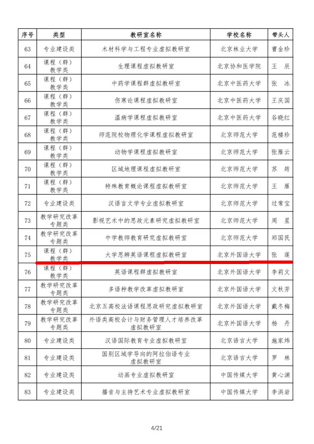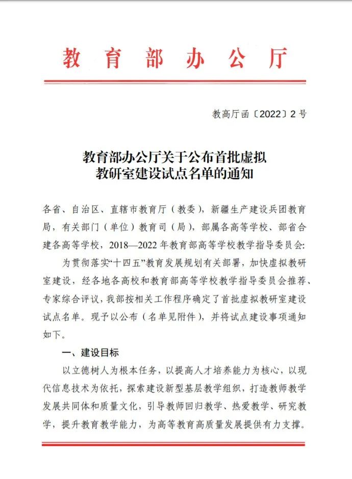 近日,教育部办公厅公布首批虚拟教研室建设试点名单。英语学院“大学思辨英语课程虚拟教研室”入选。