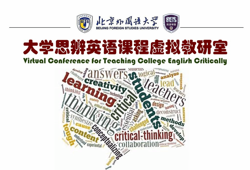 “大学思辨英语虚拟教研室(以下称‘教研室’)”是以北京外国语大学英语学院专业核心课教研室为实体基础,由全国10所成员校为核心,20所高校为合作校,近500所高校的英语专业教学团队开放式参与,协同共建的全国性基层教研组织与教师发展共同体。教研室利用信息技术在全国范围开展跨校、跨地域常态化教学研讨,引领教改,引导教师回归教学、研究教学,全面提升教育教学能力。教研室团队成员包括50多人。带头人为国家“万人计划”教学名师(2019)、教育部课程思政示范课程负责人/名师(2021)英语学院副院长张莲教授。