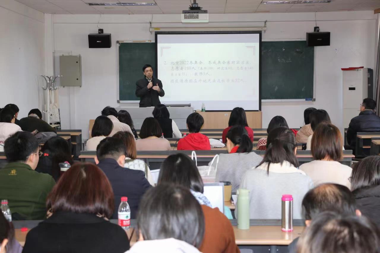 会上,英语学院院长张剑分别从冬奥、疫情与教学、科研工作、国际合作及人事工作等方面对学院新学期工作进行了全面部署。