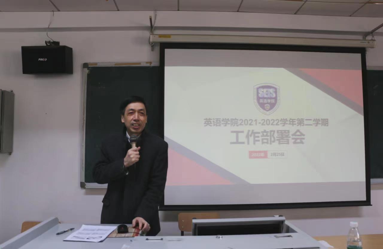 2022年2月25日上午,英语学院在417教室召开2021-2022学年第二学期工作部署会。会议由英语学院党总支书记王明欣主持,全院教职工参加。