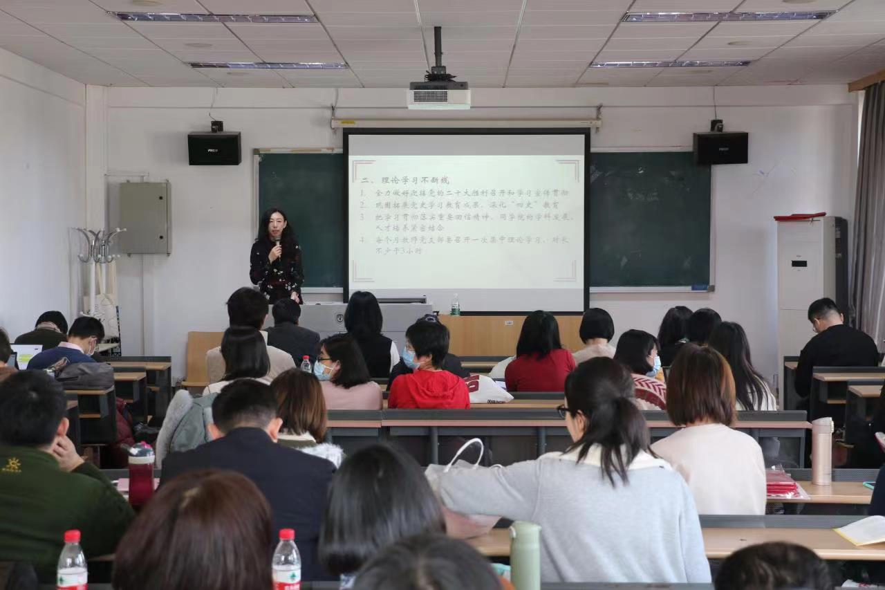 英语学院党总支书记王明欣重点从政治建设、理论学习、安全稳定、立德树人、心理健康、落实就业、立体宣传、疫情防控等8个方面对学院本学期党建和学生工作进行了部署。