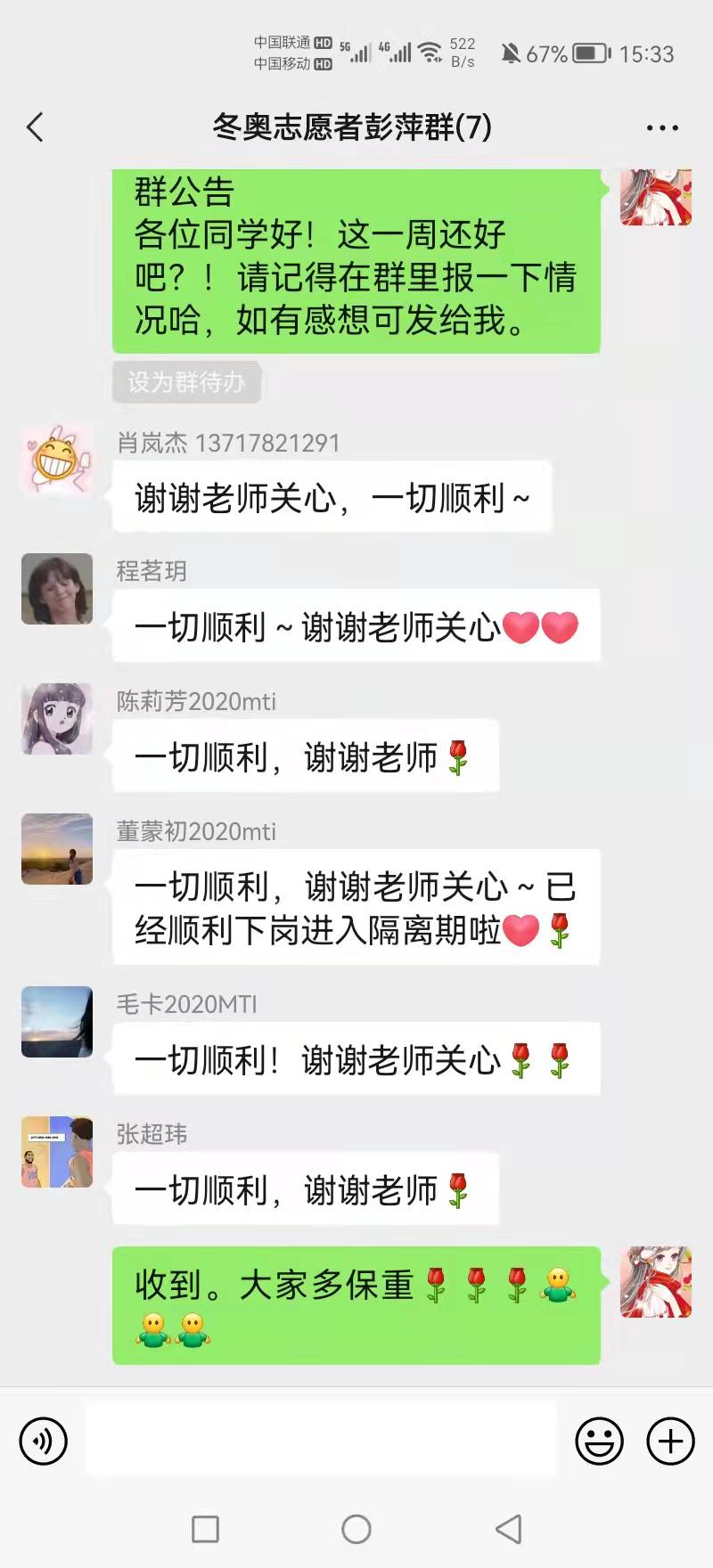 青年教师吴兆红感叹道“作为冬奥志愿者闭环外指导教师,非常高兴也非常羡慕自己的学生可以作为志愿者参与冬奥、服务冬奥,相信同学们都收获很大,为同学们感到开心!”
