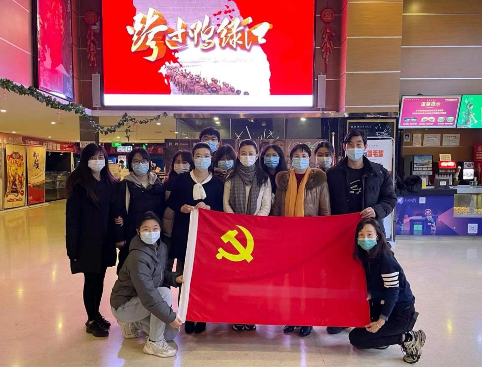 为深化党史学习教育,弘扬伟大的抗美援朝精神,进一步激发广大教职员工爱党爱国热情,1月10日下午,英语学院党总支开展“赓续抗美援朝精神 凝聚砥砺奋进力量 ”主题党日活动,组织教职工党员集体观影《跨过鸭绿江》。
