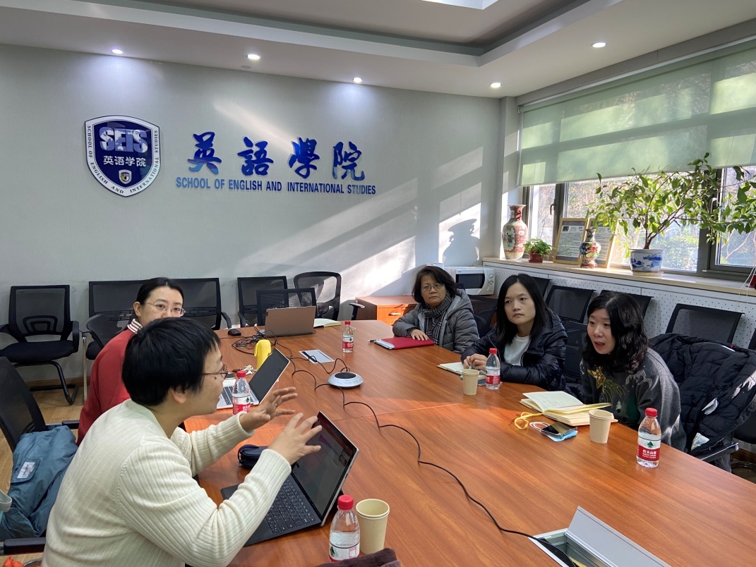 为持续推进一流专业建设,加快在线开放课程建设与应用,促进优质教育资源共享,学院于2021年9月正式启动在线开放课程项目建设工作。截止目前,学院共举行三次工作推进会议。学院副院长张莲、2021年度三门待建课程负责教师及外研社制作团队全程参与推进会议。会上,参会课程负责人进行待建设课程的样课展示,外研社制作团队就样课展示给出专业意见,随后双方又就在线开放课程制作过程中脚本撰写、课程拍摄、后期制作及教学运行等方面进行问答和讨论。