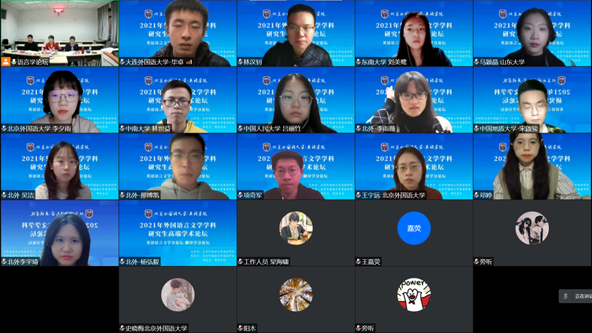 英语学院副院长王展鹏教授在致辞中表示,2021年英语语言文学分论坛首次向全国高校学生开放,旨在发挥北外外国语言文学学科的传统优势,为国内外语专业学生展示最新研究成果、交流学术经验提供平台,帮助学生开阔学术视野,提高学术创新能力,促进外语学科的人才培养和学科发展。