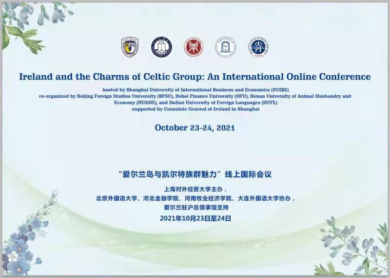 20211023-24日,爱尔兰岛与凯尔特族群魅力研讨会线上举办。本次会议由上海对外经贸大学主办,我院爱尔兰研究中心与河北金融学院、河南牧业经济学院、大连外国语大学爱尔兰研究中心等教育部国别和区域研究备案中心共同协办。会议由开幕式、新书发布式和7组近40篇论文的主题发言组成,来自各高校的百余位师生参会,各抒己见,讨论气氛热烈。