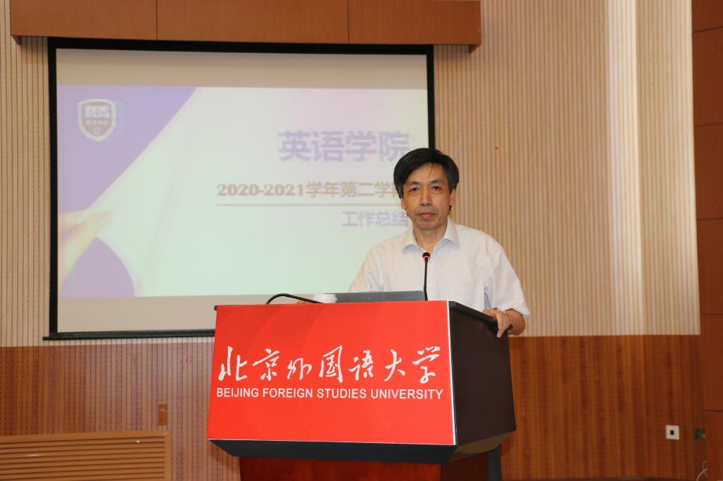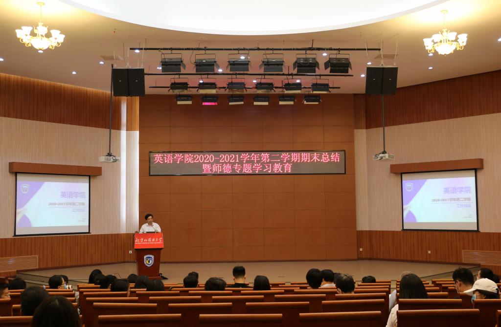 2021年7月9日,英语学院在阿语楼国会厅召开2020-2021学年第二学期期末教职工大会,英语学院全体教职工参加。