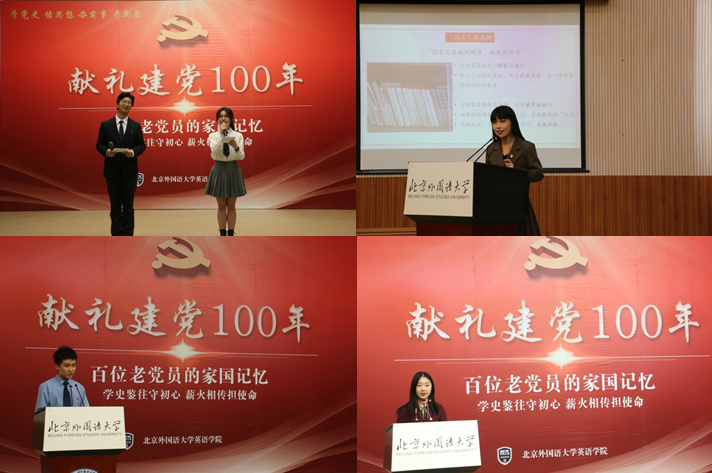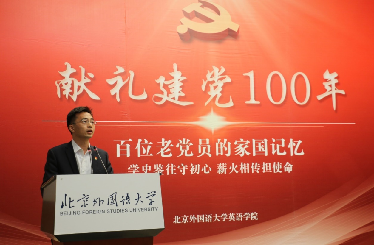 为深入推进党史学习教育,英语学院于2021年5月12日下午在阿语楼国会厅成功举办“献礼建党100年:百位老党员的家国记忆”采访报告分享会。校党委副书记苏大鹏,党委组织部常务副部长冯刚,党委宣传部副部长、新闻中心负责人王薇薇,学生处副处长、武装部部长刘雷出席本次分享会并为获奖党员和入党积极分子颁奖。学院全体党总支委员及学生党员、入党积极分子参加分享会。会前播放了本次老党员采访活动的宣传视频。