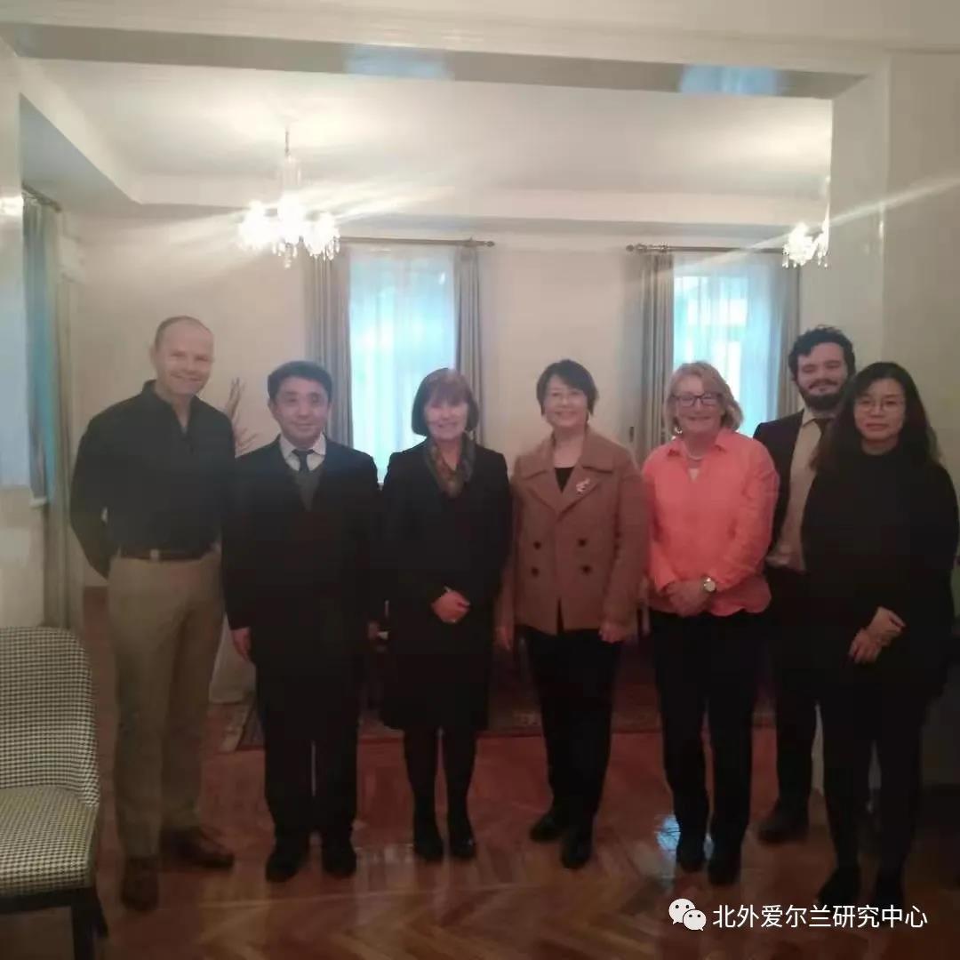 日前,爱尔兰新任驻华大使安黛文(Ann Derwin)女士邀请英语学院爱尔兰研究中心王展鹏、陈丽教授赴爱尔兰驻华使馆参加午餐会,并商谈合作事宜。