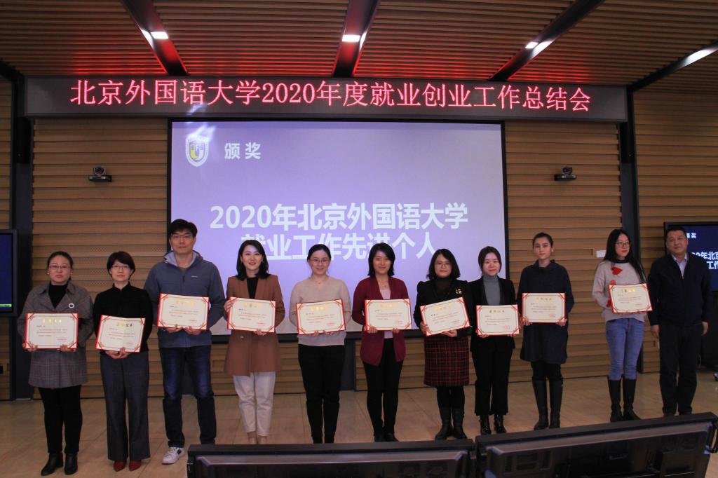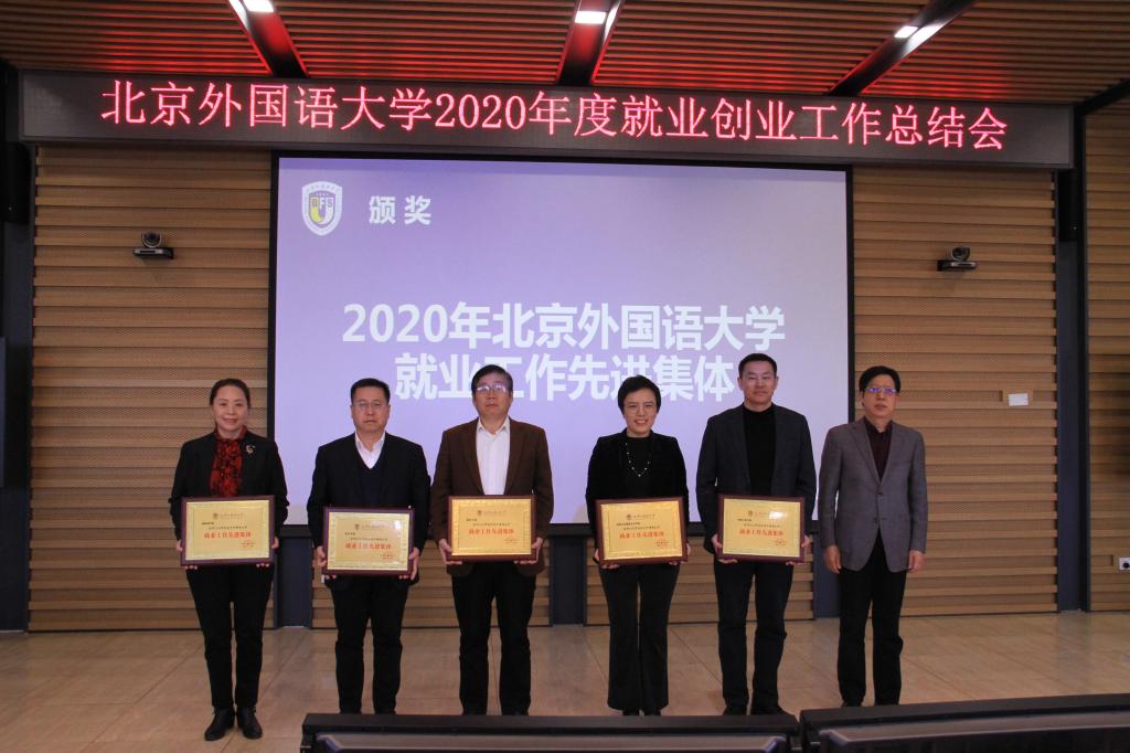 2020年12月23日,我校召开2020年度就业创业工作总结会,英语学院荣获2020年北京外国语大学就业创业工作先进集体,党总支书记路兴代表英语学院就业工作小组上台领奖。辅导员于承杰荣获“2020年北京外国语大学就业工作先进个人”。