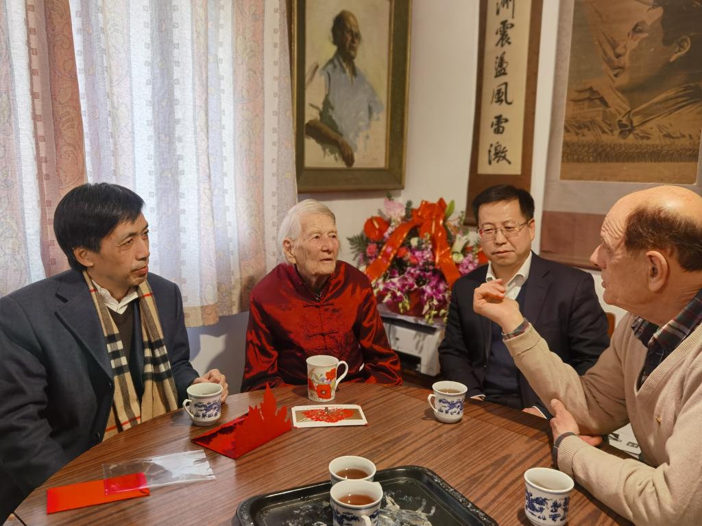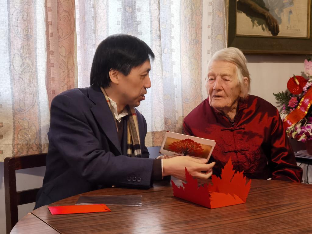 2020年12月15日下午,伊莎白教授105周岁寿辰之际,英语学院院长张剑、党总支书记路兴、办公室主任杨京刚一行来到伊莎白教授家中慰问看望,祝贺伊莎白教授生日快乐,身体健康。