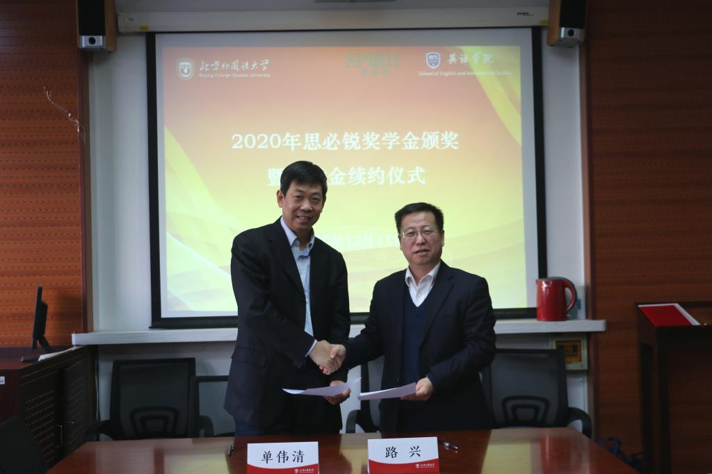 单伟清总经理介绍了思必锐公司的整体状况。他讲到,思必锐公司业务范围宽广,覆盖多个行业领域,公司对高水平翻译人才非常重视,特别希望北外学子的加入。2020年受新冠疫情影响,公司不可避免的受到冲击。但随着党和政府在疫情控制方面的积极作为,公司的业务在慢慢回暖,希望继续保持与北外英语学院的合作关系,在人才培养方面尽一份力,在翻译领域继续做好做强。他向获奖学生颁发奖学金证书,寄语学生一如既往努力学习,秉承“一字不苟,千金之诺”的信念打磨翻译技能。