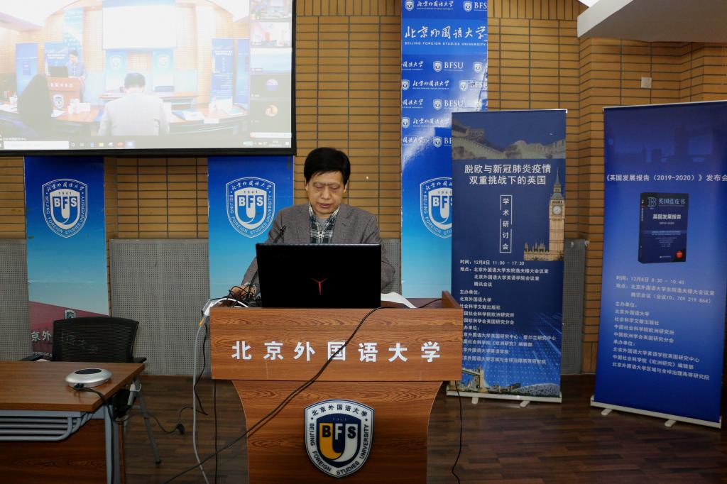 12月8日,《英国发展报告(2019-2020)》发布会暨“脱欧与新冠肺炎疫情双重挑战下的英国”学术研讨会在我校举行,会议采取线上、线下相结合的方式进行。此次活动由我校和社会科学文献出版社、中国社会科学院欧洲研究所、中国欧洲学会英国研究分会共同主办,我校英语学院英国研究中心、爱尔兰研究中心、区域与全球治理高等研究院与《欧洲研究》编辑部承办。开幕式由英国研究中心主任王展鹏主持。
