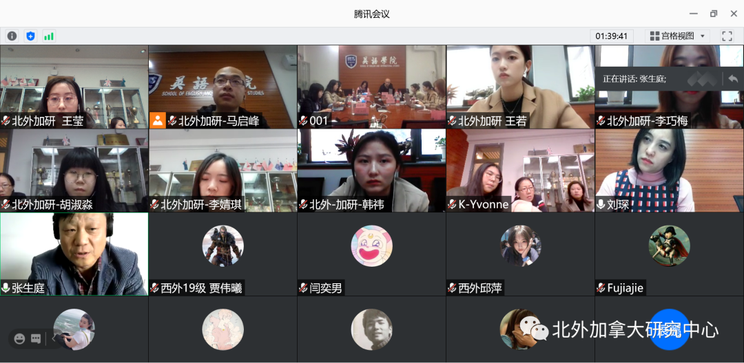 2020年11月11日,“国际发展区域国别研究研究生论坛”在北京外国语大学英语学院115会议室成功举办。论坛由教育部区域和国别研究基地北京外国语大学加拿大研究中心主办,北京外国语大学英语学院和中国加拿大研究会协办。整场论坛由北京外国语大学加拿大研究中心主任刘琛教授主持。西安外国语大学国际关系学院副院长张杰教授,西安外国语大学英文学院院长张生庭教授,中国社会科学院研究员周少青教授,北京外国语大学英语学院副院长王展鹏教授应邀作主旨报告(按照发言顺序),并对学生发言作点评。北京外国语大学加拿大研究中心张笑一副教授任点评人。加研中心博士生马启峰作主旨发言,硕士研究生司云霞、王莹、李婧琪、李巧梅、王若、胡淑淼、韩祎作参会发言。西安外国语大学区域国别研究方向硕士博士也在线参与了此次论坛。