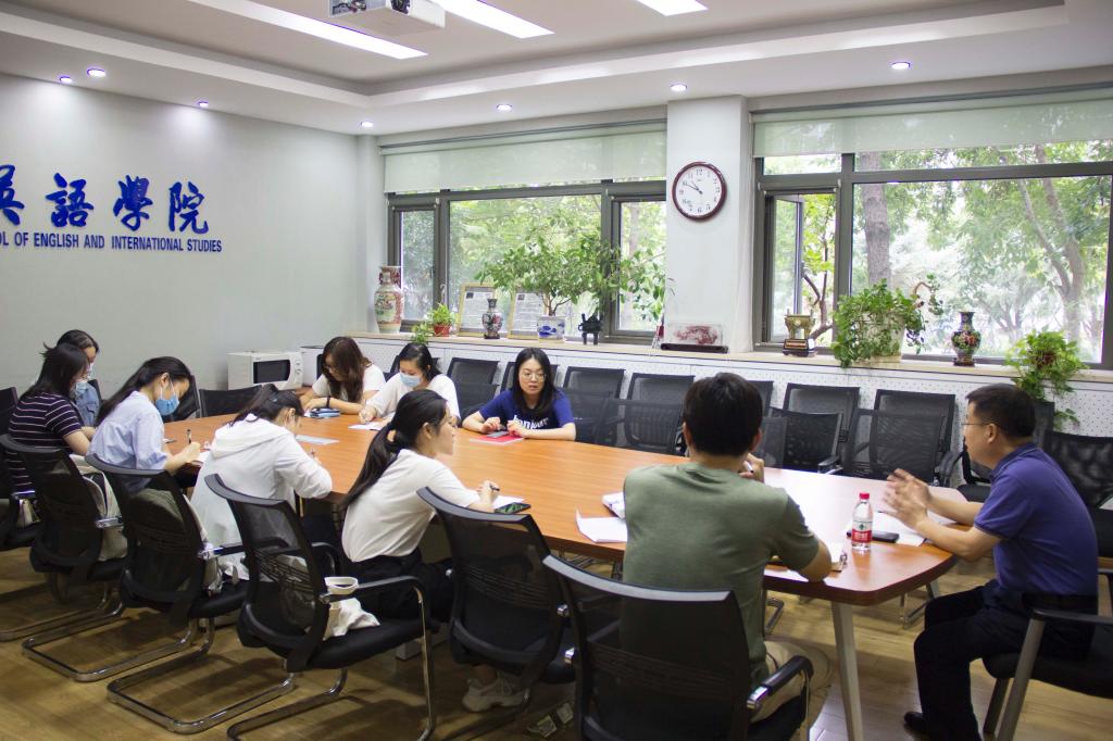 2020年9月11日下午,英语学院召开新学期第一次学生党建工作会,部署安排近期相关工作。学院党总支书记路兴老师、辅导员于承杰老师、宗辰老师和各学生党支部书记参加会议。