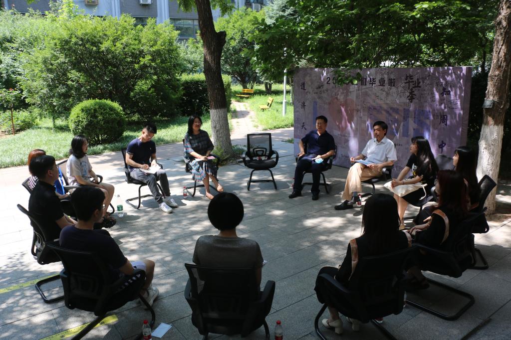 6月12日,英语学院2020届优秀毕业生座谈会在英语学院小花园举行,英语学院院长张剑、党总支书记路兴,副院长张莲、党总支副书记孟庆琨、辅导员郑鑫出席座谈会。座谈会邀请了9名英语学院本科优秀毕业生与院领导和老师进行了交流。毕业生回顾了在英语学院四年来生活学习的心得和感悟,对学院人才培养、课程设置及教材改革、文化建设等方面提出了意见和建议。