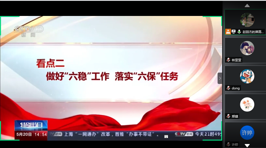 5月21日晚7点,英语学院研究生MTI笔译党支部召开了线上主题党日学习会,支部书记赵丽杰主持了此次活动。党员们共同学习“两会”相关内容,领会“两会”精神,并对“两会”的热点问题进行了深入的讨论。