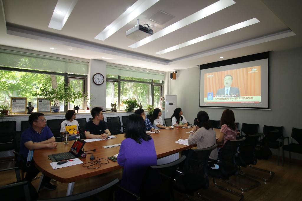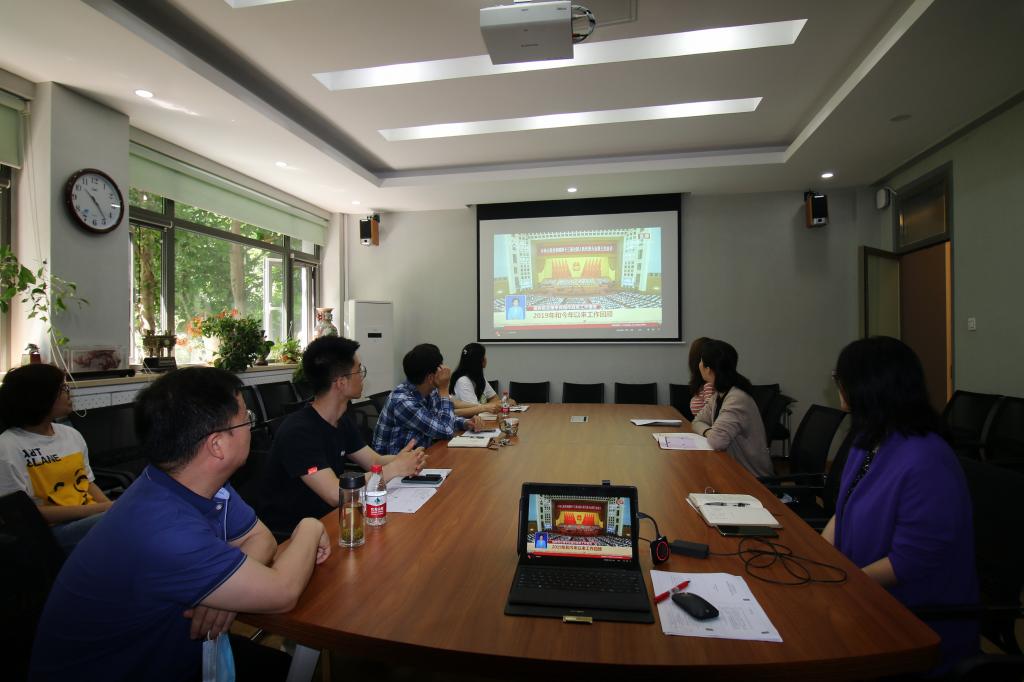 2020年5月22日上午9时,十三届全国人民代表大会第三次会议在人民大会堂开幕。英语学院教职工行政党支部党员们在英语楼111会议室集体收看学习大会开幕式,认真聆听李克强总理关于政府工作的报告,第一时间学习领会大会精神。