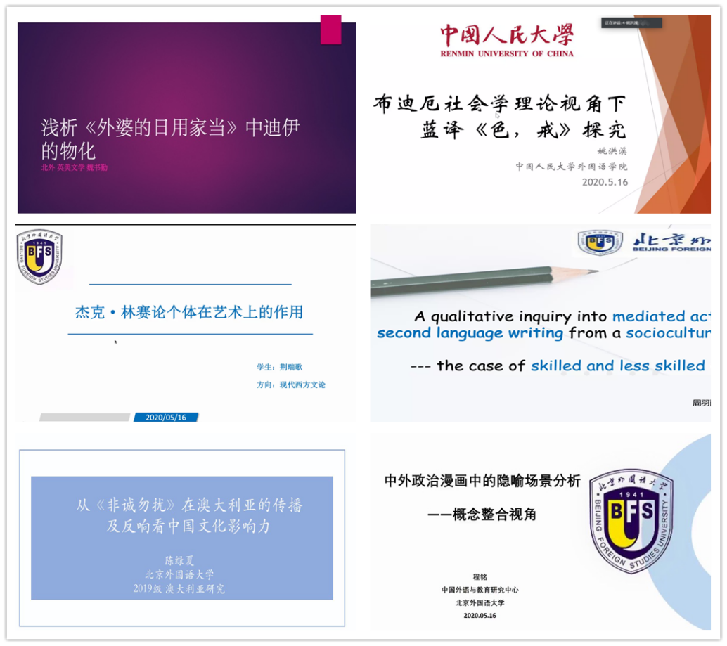2020年5月16日,北京外国语大学英语学院第十四届首都高校研究生学术论坛暨“坐道起行·目及中西”研究生学术研讨会成功举行。