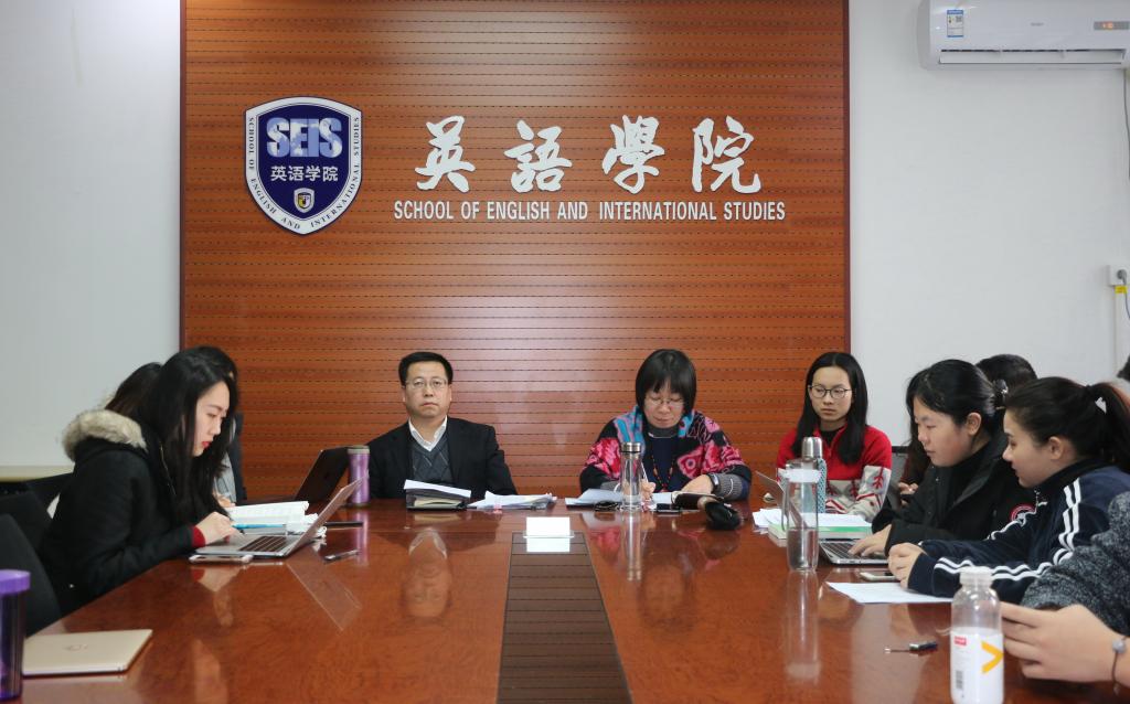2019年12月27日下午,英语学院组织召开大学生创新创业训练计划项目中期检查评审答辩会。党总支书记路兴、副院长彭萍教授、辅导员于承杰副教授组织开展本次中期检查答辩。