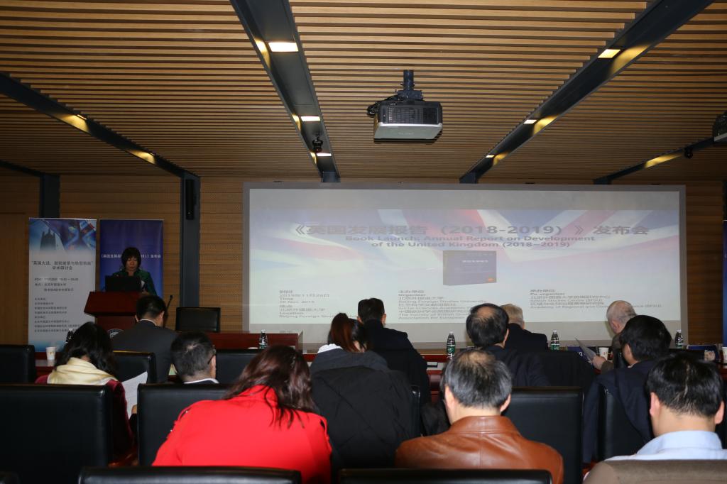 《英国蓝皮书》主编王展鹏代表课题组发布了发展报告主题报告及主要内容,聚焦2018-2019年脱欧僵局中英国政治、经济、社会的形势,探讨脱欧对英国及世界带来的深远影响。