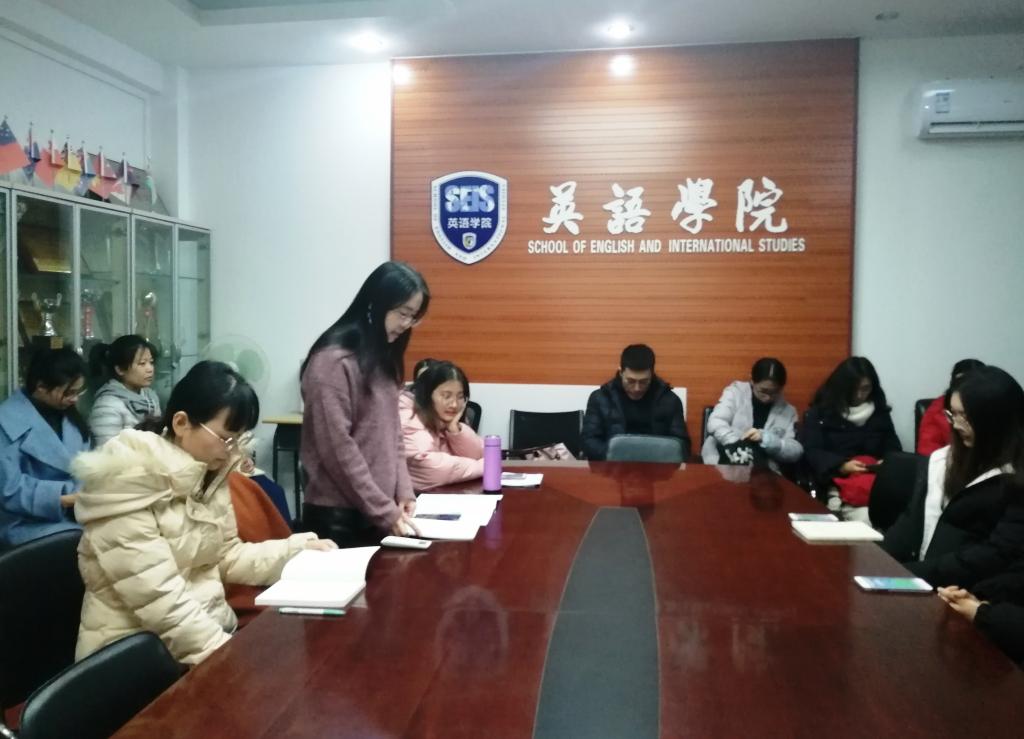 2019年11月21日晚,英语学院研究生文学党支部召开了党员学习会,组织支部党员围绕“不忘初心,牢记使命”主题进行学习讨论,并就发展魏书勤同志为中共预备党员进行了表决。学校党委组织员万里老师莅临会议,对会议进行了指导。