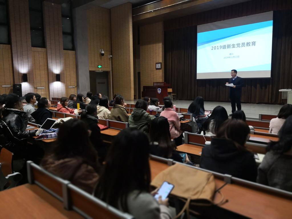 2019年11月13日晚,英语学院党总支在逸夫楼第三阶梯教室开展2019级研究生新生党员教育。党总支书记路兴、2019级研究生辅导员王博铮及2019级全体新生党员参加。