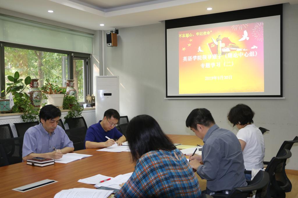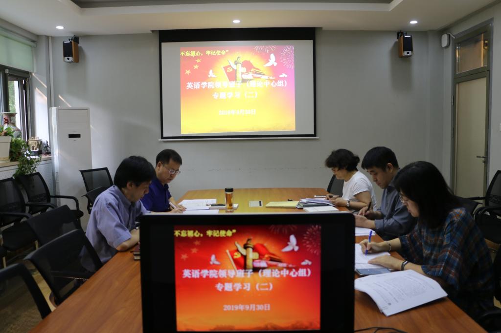 2019年9月30日上午,英语学院领导班子召开“不忘初心,牢记使命”主题教育第二次集中学习研讨,领导班子全体成员参加。