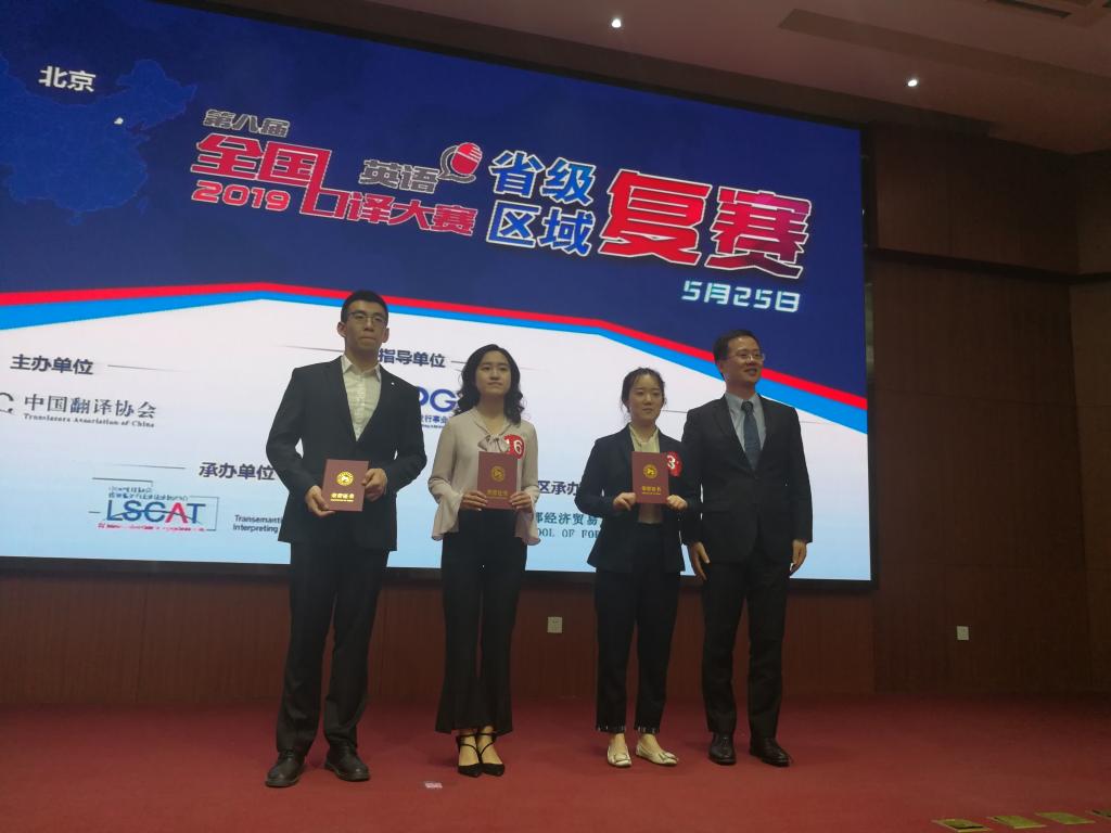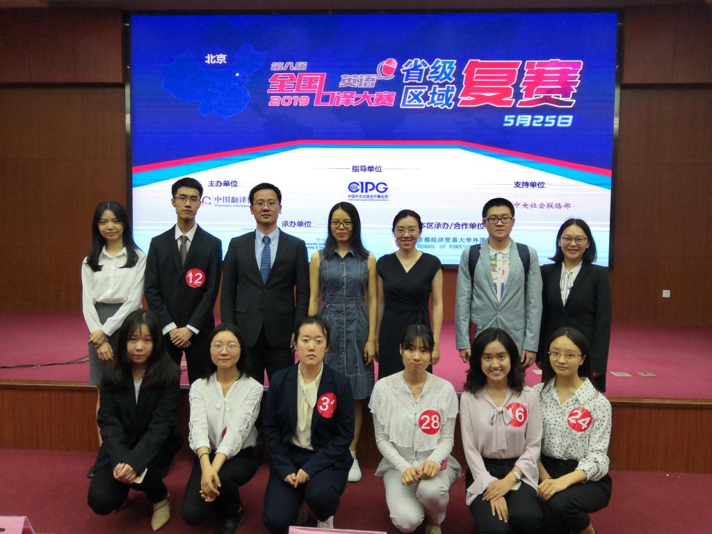 2019年5月25日,由中国翻译协会主办、中国翻译协会语言服务行业创业创新中心承办的第八届全国口译大赛北京市复赛于首都经济贸易大学外国语学院圆满落幕。来自北京外国语大学、清华大学、人民大学、外交学院、北京语言大学、首都外经贸等13所北京高校的100余位选手同台竞技。经过两轮的激烈角逐,北外高翻学院的姜子豪、英语学院的金羽菲、侯玉颖获得一等奖,英语学院的尹佩璇、潘婷立、谢怡凡获得二等奖,携手晋级华北大区赛。