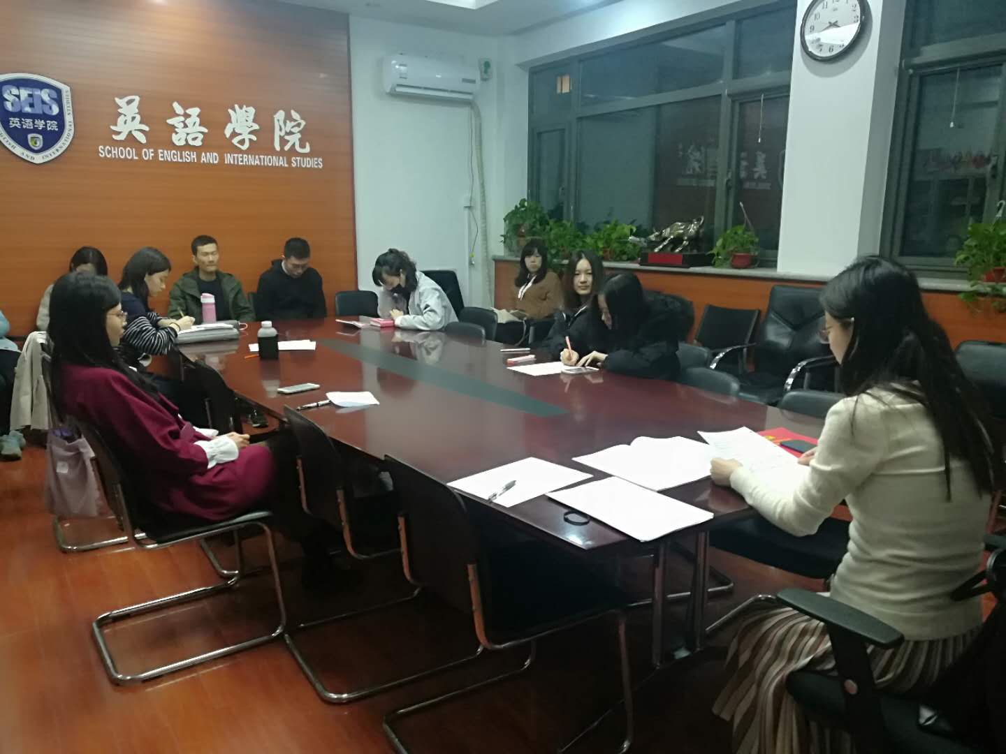 2019年4月3日晚8点,英语学院研究生文学党支部召开了党员学习会,组织支部党员围绕“两会”精神学习进行讨论,会上还就发展闫晗为中共预备党员进行了表决。
