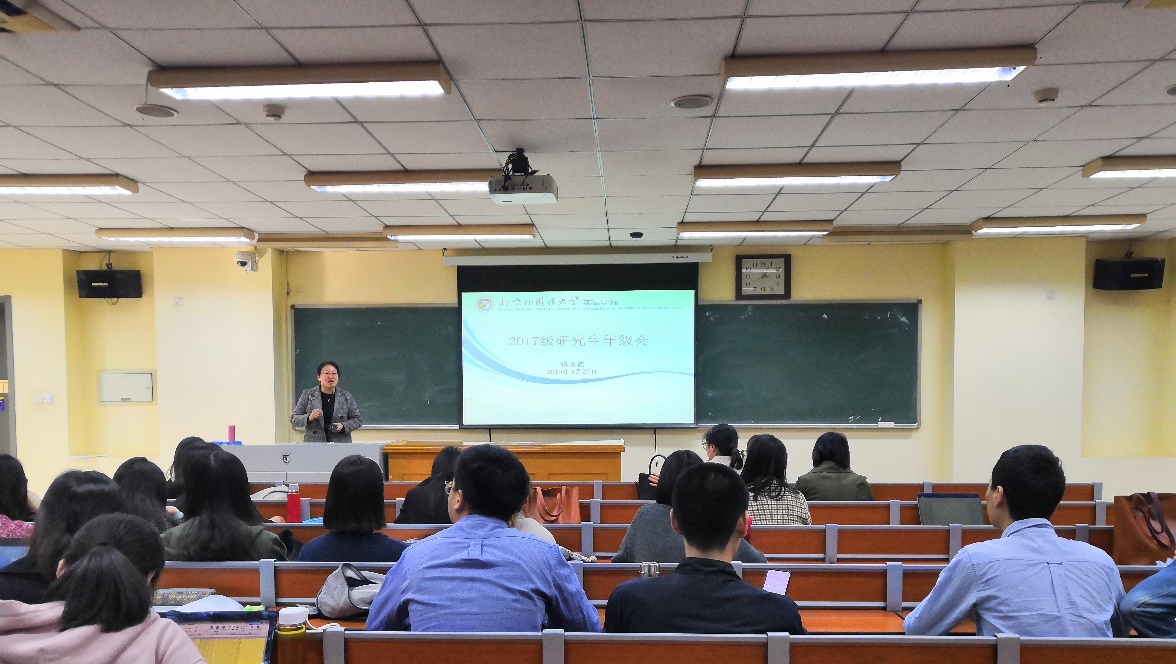 2019年3月27日下午15:00-17:00,英语学院2017级学硕研究生举行年级会暨求职经验分享会,会议由辅导员张春霞老师主持,此次年级大会主要围绕求职经验分享、2019年就业工作进展以及2020年就业工作布置三大部分展开。