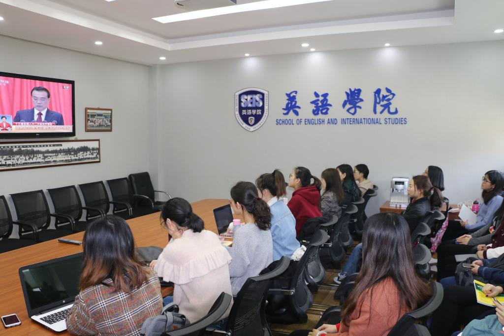 英语学院组织师生收看十三届全国人大二次会议开幕式